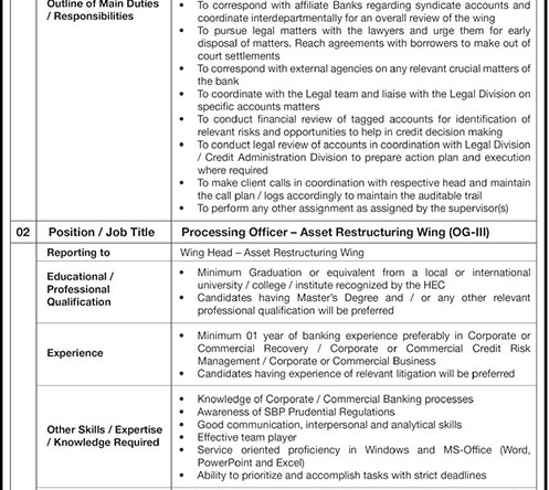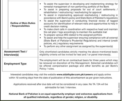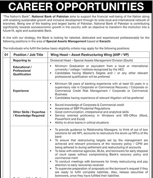 National Bank of Pakistan NBP Jobs: The National Bank of Pakistan (NBP) has announced career opportunities in the Special Assets Management area for the following positions based in Karachi: